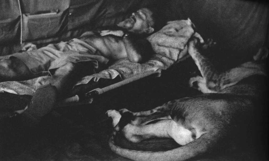 Elsa on a camp bed |